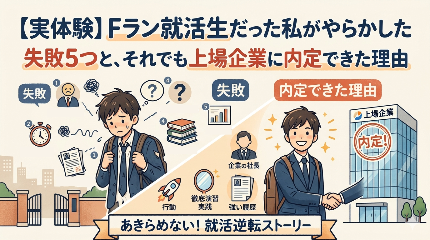 この記事では、私が実際にやってしまった失敗と、そこからどう立て直したかをすべて話します。「Fランだから無理」と諦めかけている人に、少しでも参考になれば嬉しいです。